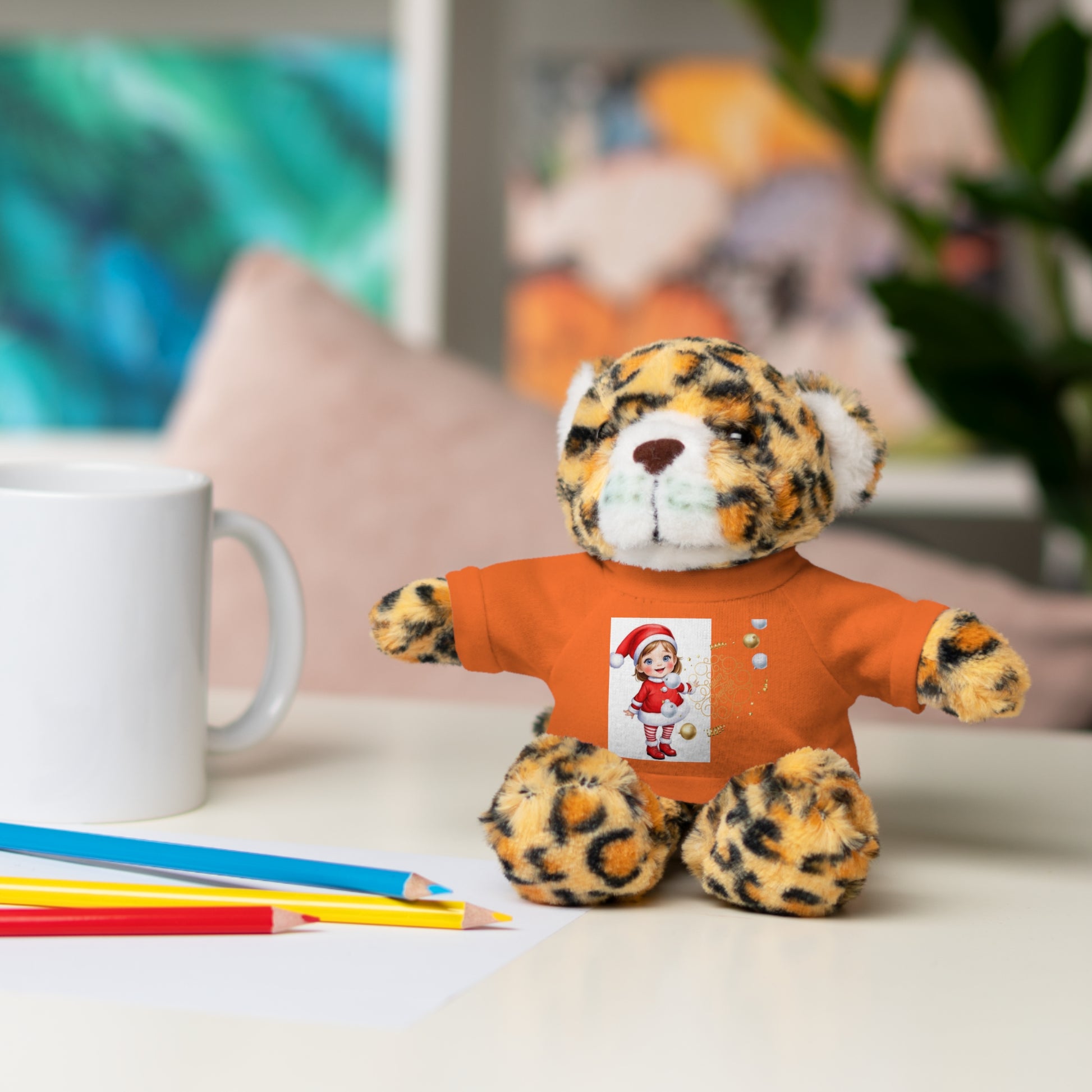 Created to put ear-to-ear smiles on any child, these stuffed animals come with a playful attitude and customizable tees. Each plushie is 8" tall, features polyester and plastic pellet stuffing, while their tees are 100% cotton. Perfect for ages 3+. Available animals: Panda, Lion, Bear, Bunny, Jaguar, and Sheep.